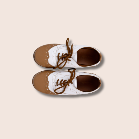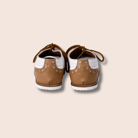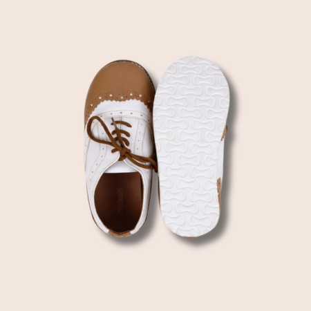 Why settle for "basic" when he can have "bespoke"? The Tan-Tastic Trekker takes the classic gentleman's wingtip and injects it with pure playground energy. With a crisp cream upper and toffee-tan accents, these are the shoes that make other parents ask, "Where did you get those?".