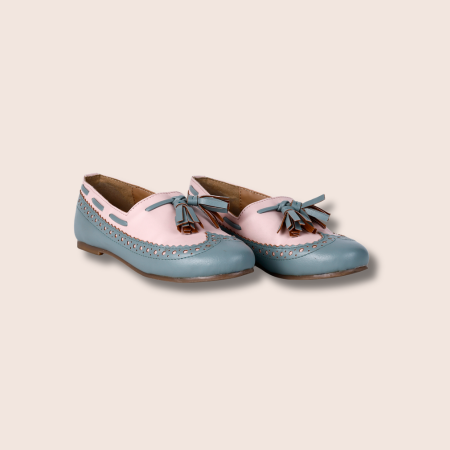 Who says classic can’t be cool? Our Tip Toe Tassel loafers take traditional brogue craftsmanship and give it a serious pop of color. Featuring a dreamy combo of candy pink and sage green, these aren't just shoes—they're a mood. Designed with a jagged "wingtip" edge and playful double tassels, they’re perfect for kids who march (and dance) to their own beat.
